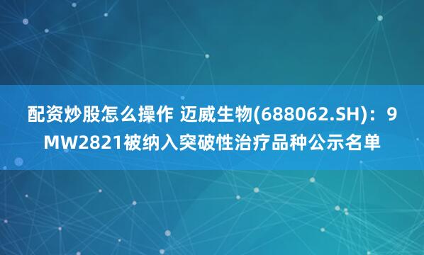 智通财经APP讯,迈威生物(688062.SH)发布公告,公司采用自主知识产权研发的创新药9MW2821目前针对尿路上皮癌、宫颈癌、食管癌、乳腺癌等多个适应症正在开展多项临床研究。近日,9MW2821被国家药品监督管理局药品审评中心纳入突破性治疗品种公示名单,适应症为联合特瑞普利单抗用于治疗既往未经系统治疗的、不可手术切除的局部晚期或转移性尿路上皮癌。